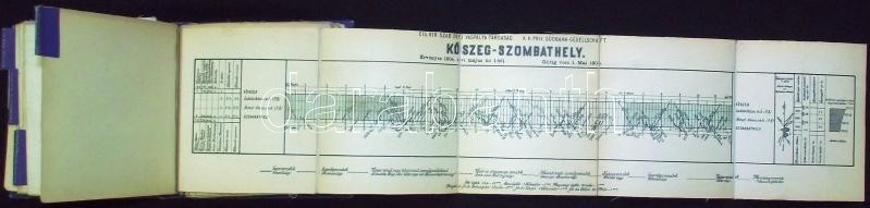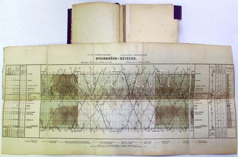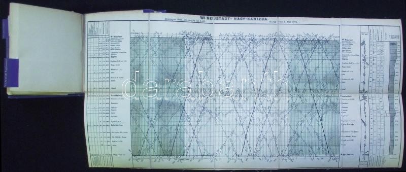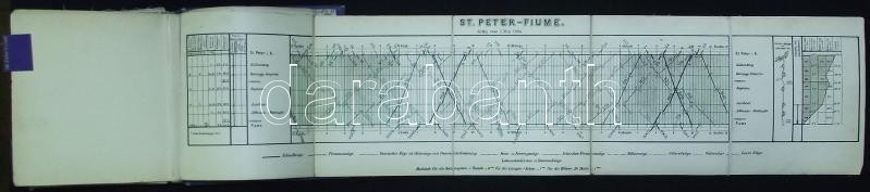1904 Cs. és Kir. Déli Vaspálya Társaság Menetrend ábrák. Térképes menetrend-füzet 9 db kiahajtható 56x26 cm-es térképpel. / Train schedule of the k.u.k. Priv. Bahn Gesellschaft. Booklet with 9 maps. Nice condition.
