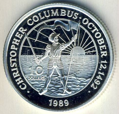 Leírás: Bahama szigetek 1989. 10$ Ag "Kolumbusz Kristóf" Tanúsítvánnyal T:PP