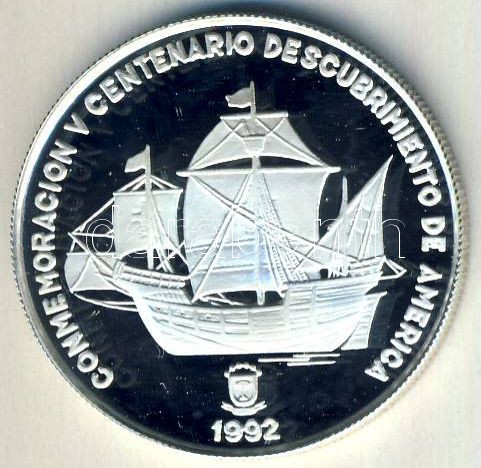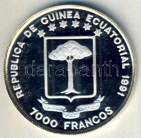 Leírás: Egyenlítői Guinea 1991. 7000Fr Ag "Kolumbusz-Santa Maria" Tanúsítvánnyal T:PP