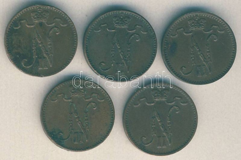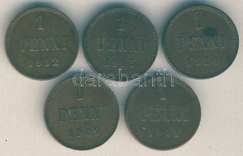 Finnország / orosz megszállás 1909-1915. 1p (5x) klf évszámokkal T:2,2... https://www.darabanth.com/hu/146-Gyorsarveres/146.0/Numizmatika/Kulfoldi-fem-es-ezustpenzek~500112/Finnorszag-orosz-megszallas-1909-1915-1p-5x-klf-evszamokkal-T2-2-~II438706
