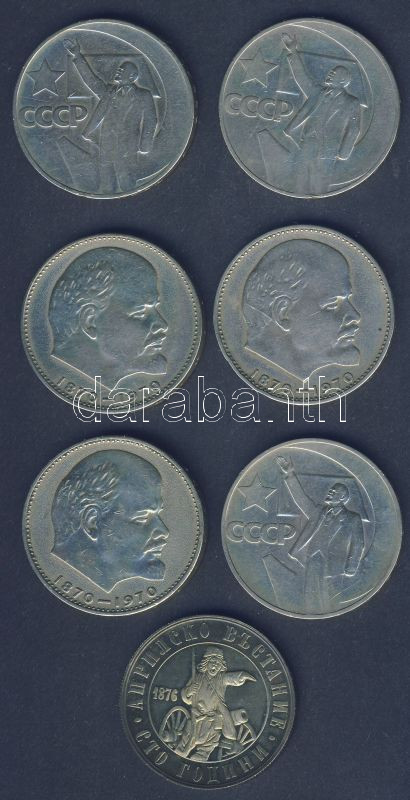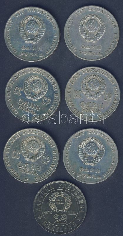 Szovjetunió 1970. 1R "Lenin" (3x) + 1R "50 éves a forradalom" (3x) T:2... https://www.darabanth.com/hu/146-Gyorsarveres/146.0/Numizmatika/Kulfoldi-fem-es-ezustpenzek~500112/Szovjetunio-1970-1R-Lenin-3x-plus-1R-50-eves-a-forradalom-3x-T2-3-plus-Bulgaria-1976-2L-100~II412419