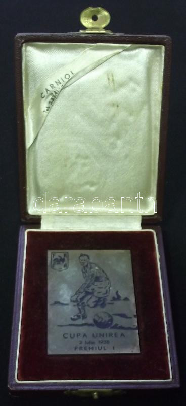 Románia 1938. "Cupa Unirea 3 Julie 1938 Premiul I" Br emlékplakett ere... https://www.darabanth.com/hu/146-Gyorsarveres/146.0/Numizmatika/Kulfoldi-nemesfem-es-fem-emlekveretek-plakettek-kituntetesek~500113/Romania-1938-Cupa-Unirea-3-Julie-1938-Premiul-I-Br-emlekplakett-eredeti-diszdobozban-T2~II437766