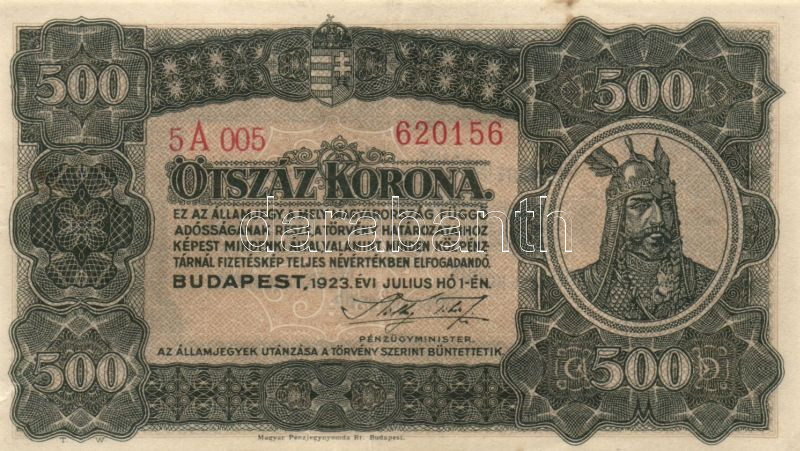 Leírás: 1923. 500K "Magyar Pénzjegynyomda Rt" T:II