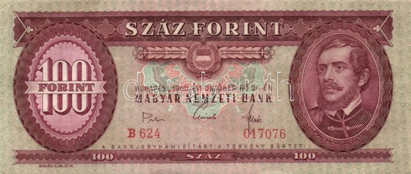 1968. 100Ft (5x) T:II,III https://www.darabanth.com/hu/146-Gyorsarveres/146.0/Numizmatika/Magyar-bankjegyek~500107/1968-100Ft-5x-TII-III~II384420