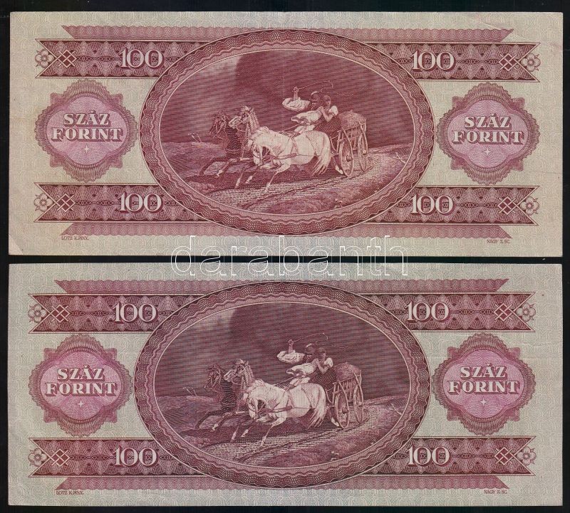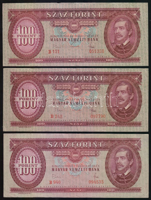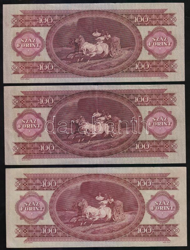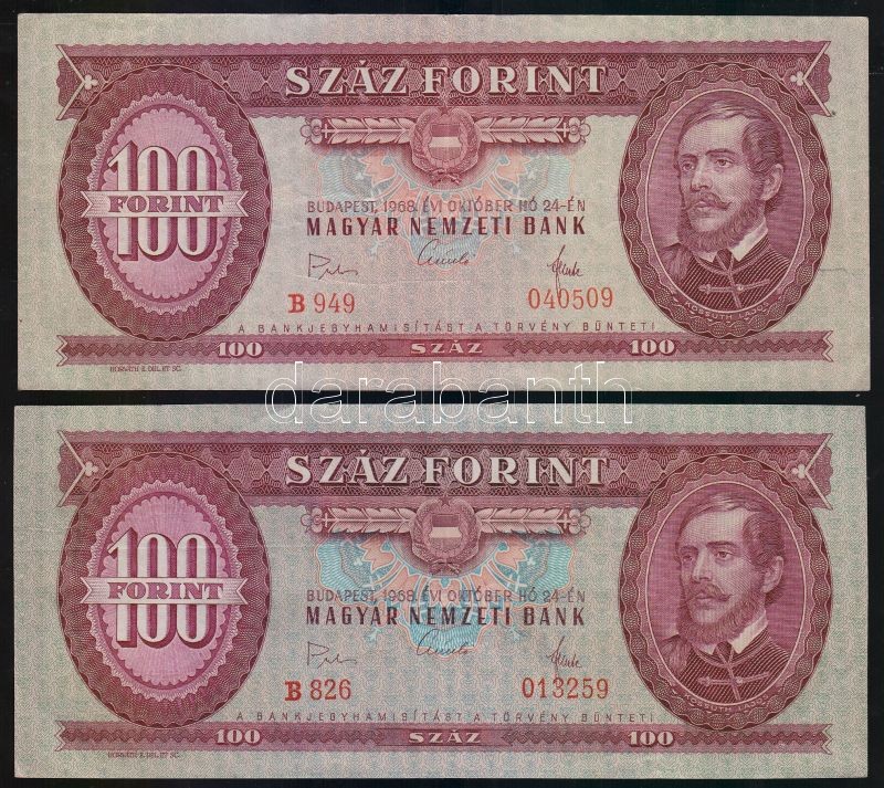 1968. 100Ft (5x) T:II,III https://www.darabanth.com/hu/146-Gyorsarveres/146.0/Numizmatika/Magyar-bankjegyek~500107/1968-100Ft-5x-TII-III~II384421