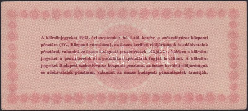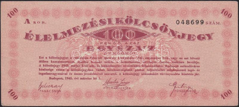 Leírás: Budapest 1945. 100P "Élelmezési kölcsönjegy" T:II