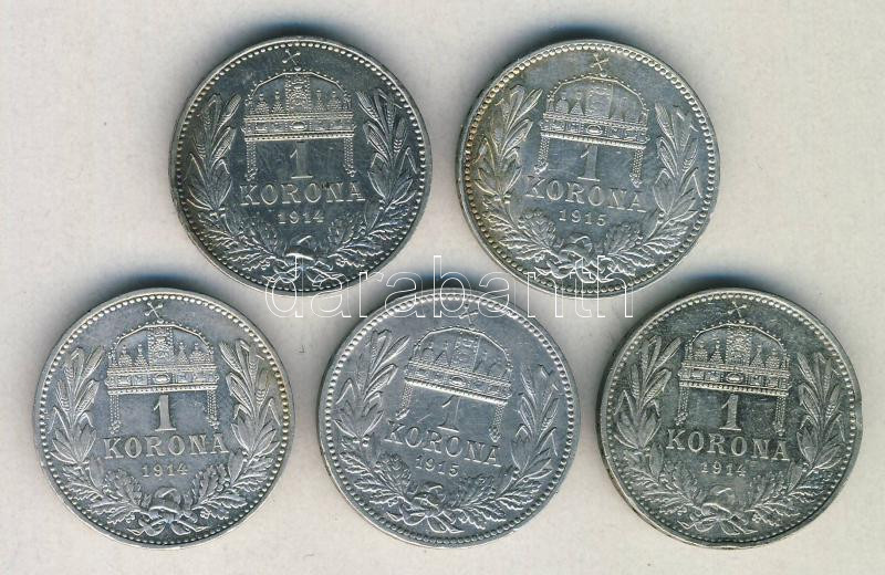 Leírás: 1914-1915. 1K Ag (5x) T:2,3