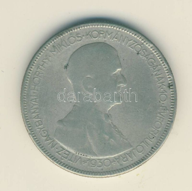 Leírás: 1930. 5P Ag "Horthy jobbra" T:3