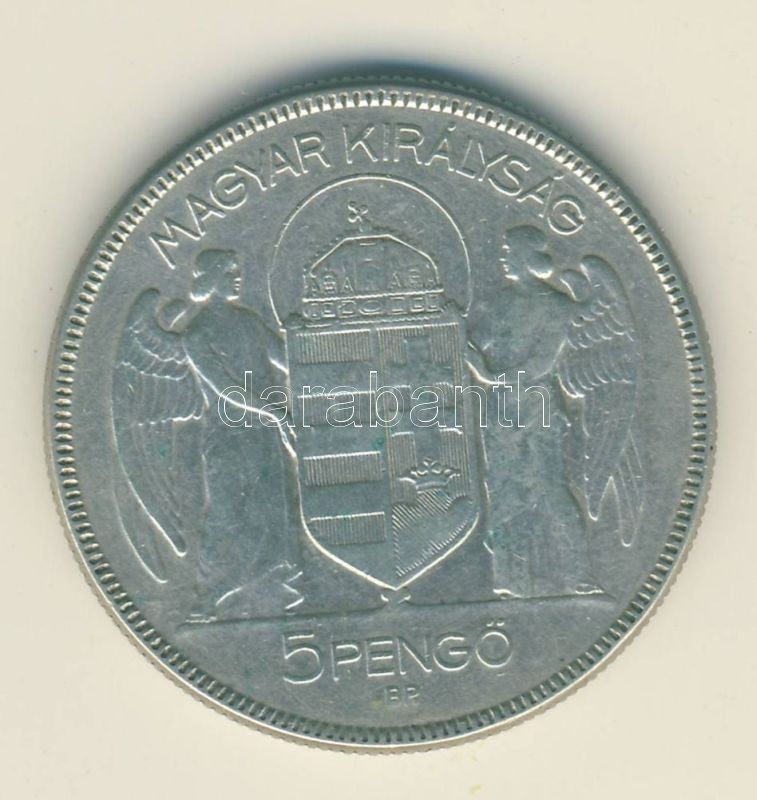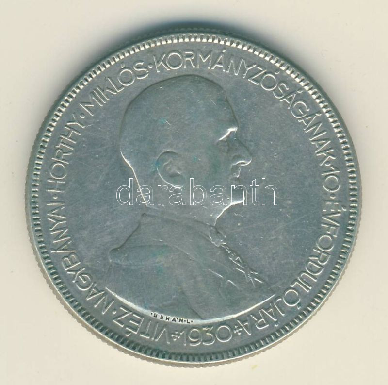 Leírás: 1930. 5P Ag "Horthy jobbra" T:3