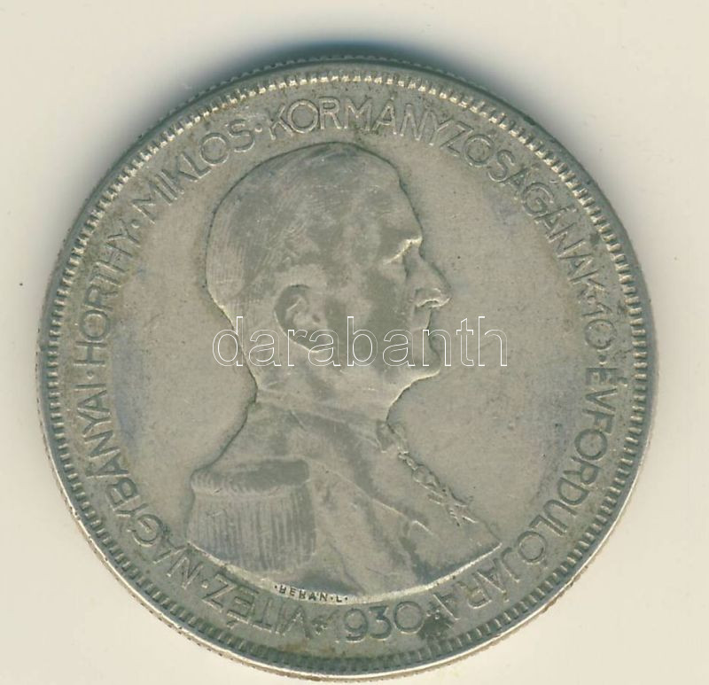 Leírás: 1930. 5P Ag "Horthy jobbra" T:3