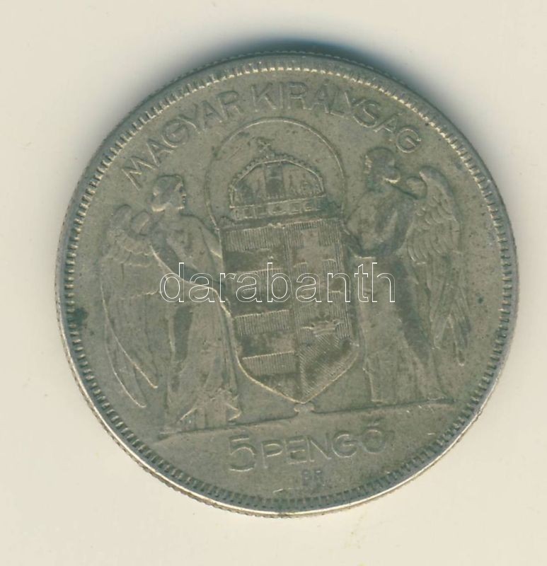 Leírás: 1930. 5P Ag "Horthy jobbra" T:3