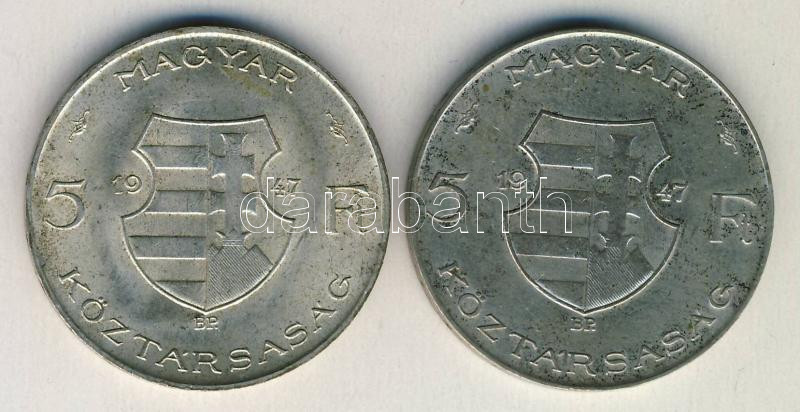 Leírás: 1947. 5Ft Ag (2x) "Kossuth" T:2,2- ph.