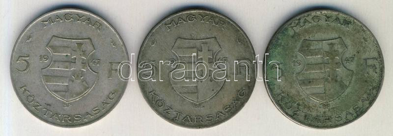 Leírás: 1947. 5Ft Ag (3x) "Kossuth" T:3 ph.