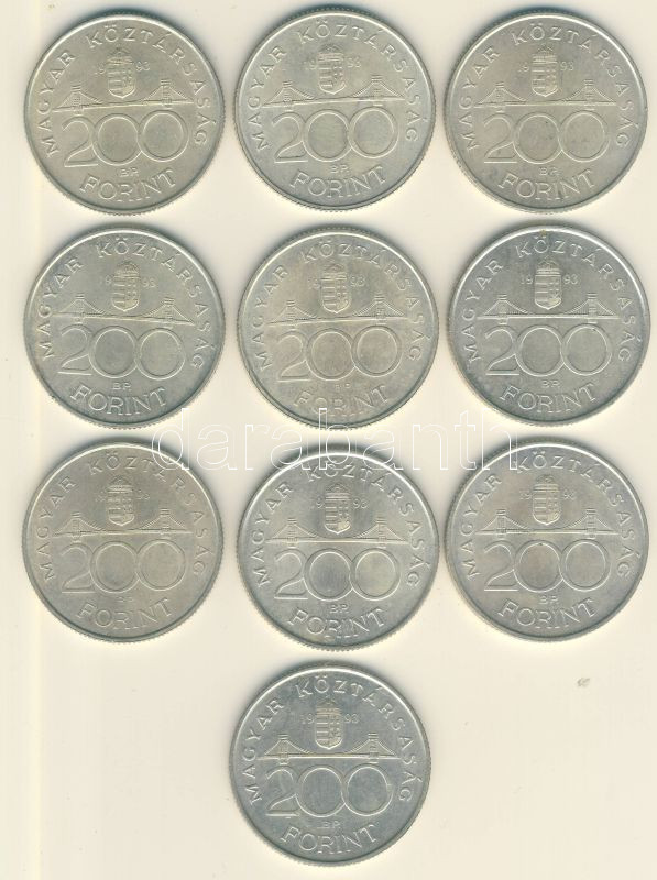 Leírás: 1993. 200Ft Ag "MNB" (10x) T:2,2-