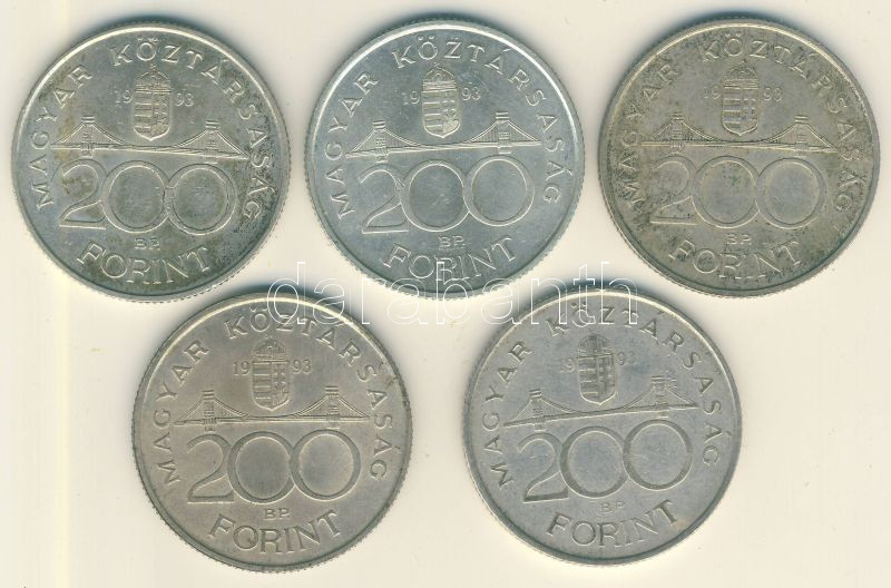 Leírás: 1993. 200Ft Ag "MNB" (5x) T:2,3