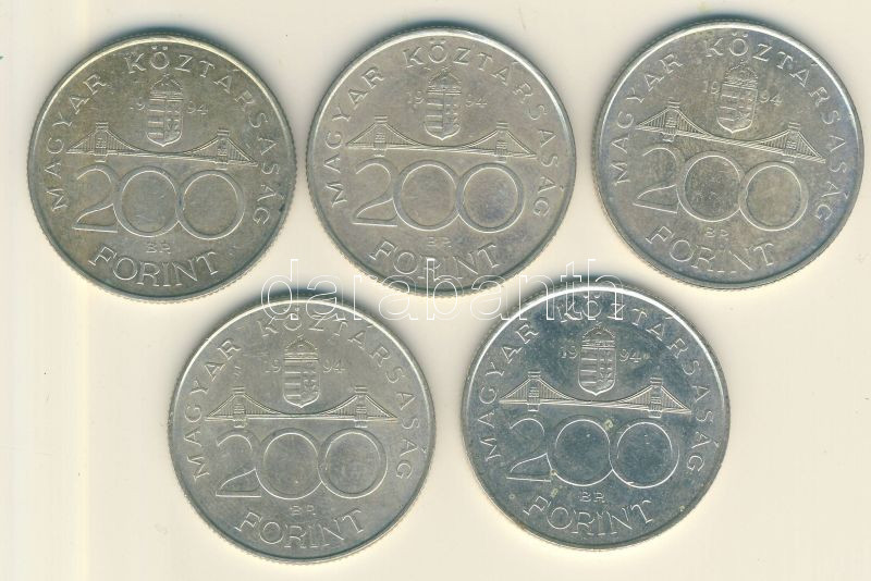 Leírás: 1994. 200Ft Ag "Deák" (5x) T:2,2-