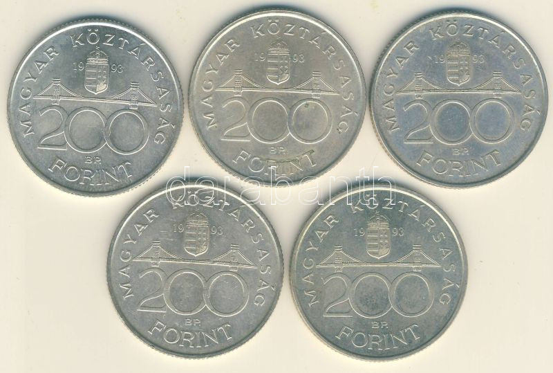 Leírás: 1994. 200Ft Ag "Deák" (5x) T:2,2-
