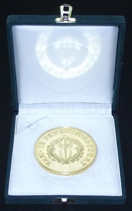 Leírás: DN "Vám- és Pénzügyőrségért" nagyalakú aranyozott piefort emlékplakett eredeti díszdobozban T:PP