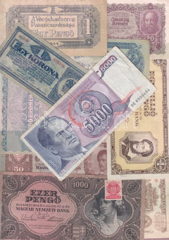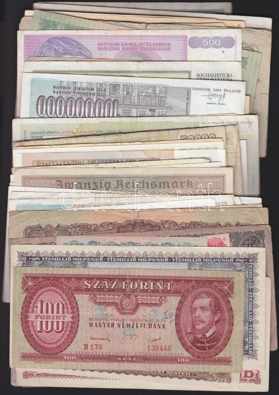 Vegyes bankjegy tétel:magyar koronák, pengők, forintok (1949. 100Ft is), jugoszláv, szlovén, csehszlovák, horvát, román, indonéz, szovjet, török, olasz, kínai, ... bankjegyek T:vegyes (UNC is köztük) összesen 125db!
