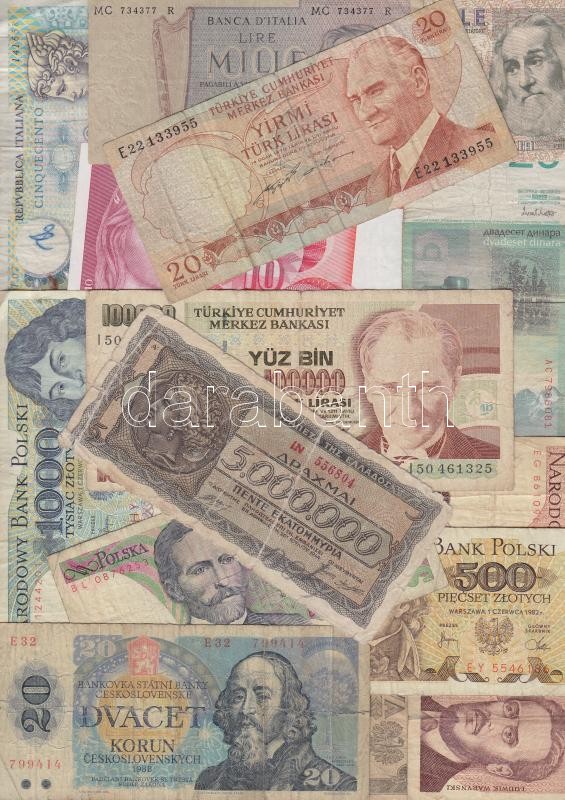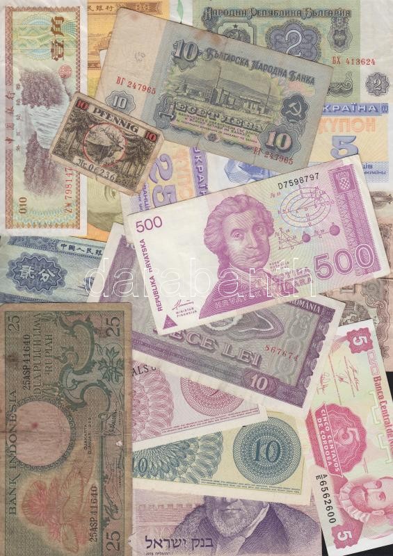 Vegyes bankjegy tétel:magyar pengők, jugoszláv, szlovén, csehszlovák, horvát, román, makedón, indonéz, szovjet... bankjegyek T:vegyes (UNC is köztük) összesen 110db!