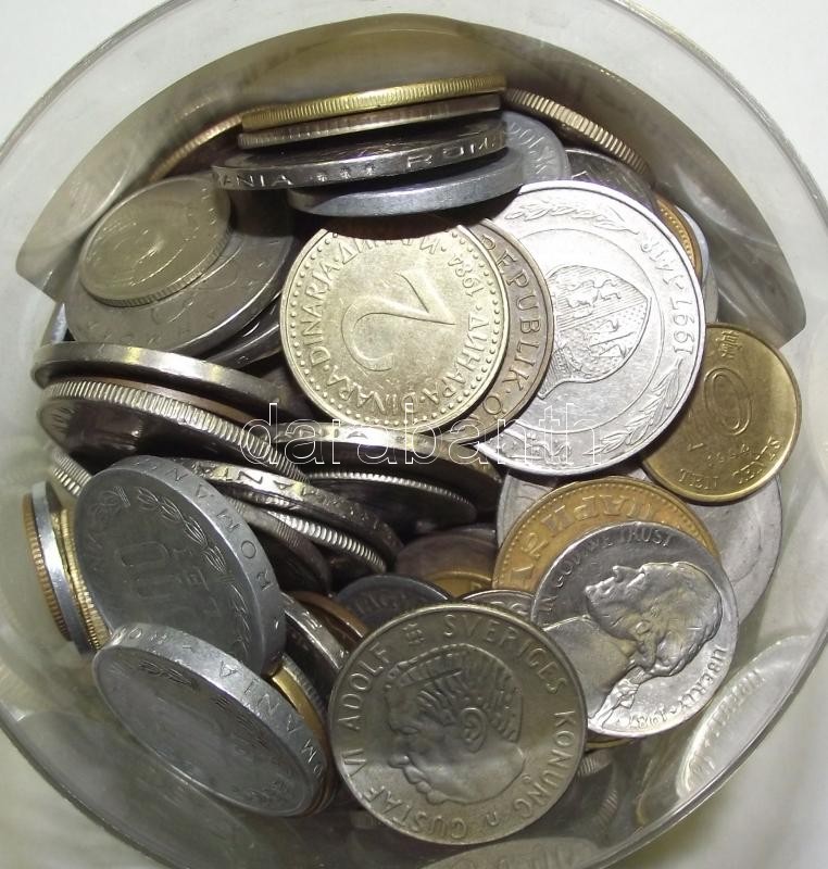 Leírás: Vegyes világpénz tétel 1,1kg súlyban, összesen 250db T:vegyes