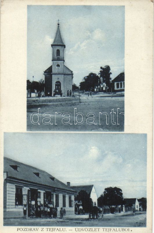 Tejfalu (Somorja) church and shop https://www.darabanth.com/hu/147-Gyorsarveres/147.0/Kepeslapok/Felvidek~500008/Tejfalu-Somorja-church-and-shop~II442519