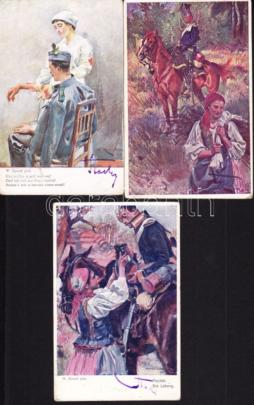 Leírás: 15 db katonai témájú festménylap az I. világháború idejéből