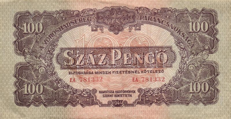 Leírás: 1944. 1P + 100P "Vöröshadsereg" T:I,I-