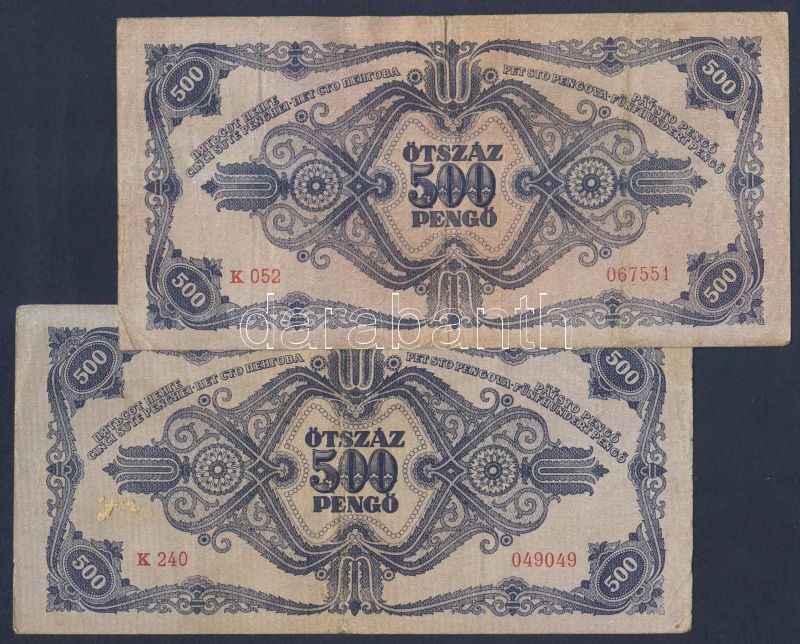 1945. 500P (2x) mindkettő hamis bélyeggel T:III https://www.darabanth.com/hu/147-Gyorsarveres/147.0/Numizmatika/Magyar-bankjegyek~500111/1945-500P-2x-mindketto-hamis-belyeggel-TIII~II430464