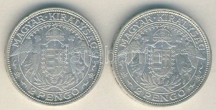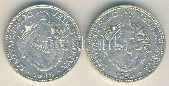 1933-1938. 2P Ag (2x) "Madonna" T:2- https://www.darabanth.com/hu/147-Gyorsarveres/147.0/Numizmatika/Magyar-fem-es-ezustpenzek~500112/1933-1938-2P-Ag-2x-Madonna-T2-~II439879