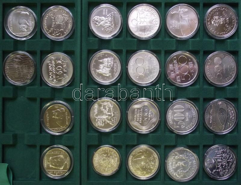 Leírás: Nagyon szép gyűjtemény, forint emlékveretek,összesen 22db: 1973. 50Ft Ag "Petőfi" T:BU + 1983. 100Ft "FAO" T:BU + 1985. 100Ft 3klf db "Természetvédelem - vadmacska, mocsári teknős, vidra" sor T:BU + 1985. 500Ft Ag "Kulturális fórum" T:BU + 1986. "Mexikó VB" sor 4 érték 500Ft 2db ezüst + 100Ft 2db fém T:BU + 1986. 500Ft Ag "Budavár visszavétele 1686" T:BU + 1986. 500Ft Ag "Téli olimpia-Calgary" T:BU + 1987. 500Ft Ag "Nyári olimpia-Szöul" T:BU + 1988. 500Ft Ag "Labdarúgó EB" T:BU + 1988. 500Ft Ag "Labdarúgó VB" T:BU + 1989. 500Ft Ag "Védd a gyermeket" T:BU Csak 10.000db! + 1989. 500Ft Ag "Labdarúgó VB" T:BU Csak 7000db! + 1989. 500Ft Ag "Nyári olimpia-Barcelona" T:BU + 1993. 500Ft Ag "Integráció az EU-ba" T:BU + 1994 500Ft Ag "Kossuth Lajos" T:BU + 1994. 500Ft Ag "Integráció az EU-ba" T:BU + 1994. 500Ft Ag "Régi dunai hajók II. - Carolina" T:BU