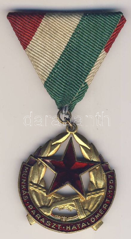 Leírás: 1957. "Munkás-Paraszt Hatalomért Emlékérem" tokban T:2 ~20.000 adományozás, sérült zománc