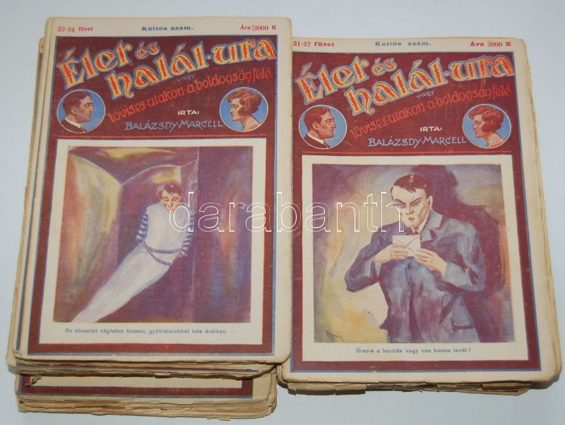 Leírás: cca 1922 Balázsdy Marcell: Élet és halál ura - tövises utakon a boldogság felé 80 füzetben, kompletten. Illusztrált címlapokkal.