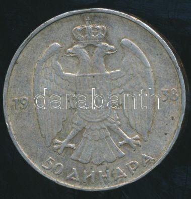 Yugoslavia 1938. 50 Dinar... https://www.darabanth.com/hu/149-Gyorsarveres/149.0/Numizmatika/Kulfoldi-fem-es-ezustpenzek~600112/Jugoszlavia-1938-50D-Ag-II-Peter-T3---Yugoslavia-1938-50-Dinara-Petar-II-CF~II453622