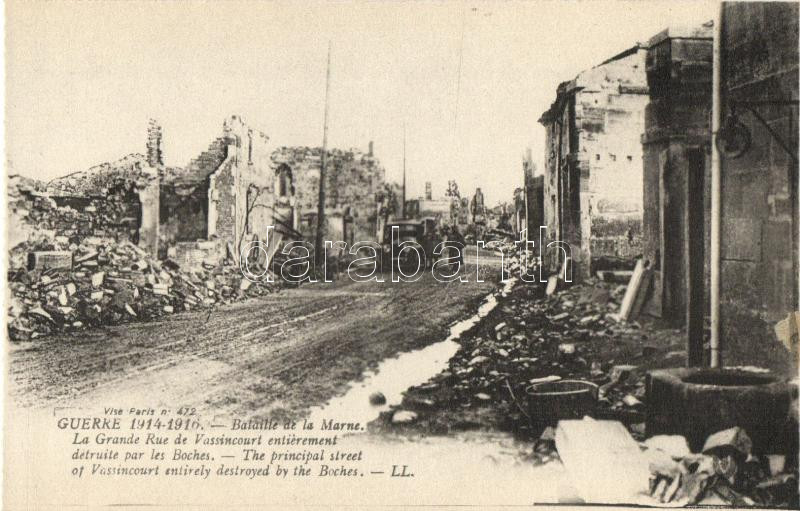 Vassincourt, La Grande Rue, Bataille de la Marne / war-damaged street ... https://www.darabanth.com/hu/15-Fix-aras-ajanlatunk/15.2/Kepeslapok/Franciaorszag~7448/Vassincourt-La-Grande-Rue-Bataille-de-la-Marne-war-damaged-street-taken-from-a-postcard-booklet~II1169253