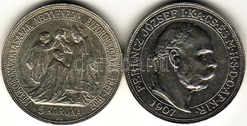 1907 5K "40. évf. ..." 2db T:2+ https://www.darabanth.com/hu/15-Gyorsarveres/15.0/Numizmatika/Numizmatika-Bankjegyek~89/1907-5K-40-evf-2db-T2plus~II25059