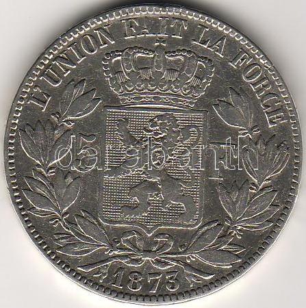 Belgium 1873 5Fr ezüst T:3+ https://www.darabanth.com/hu/15-Gyorsarveres/15.0/Numizmatika/Numizmatika-Bankjegyek~89/Belgium-1873-5Fr-ezust-T3plus~II24674