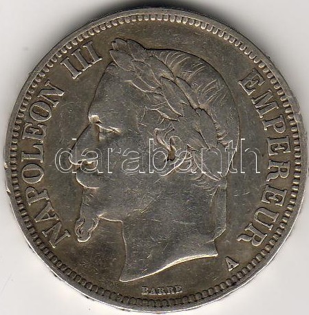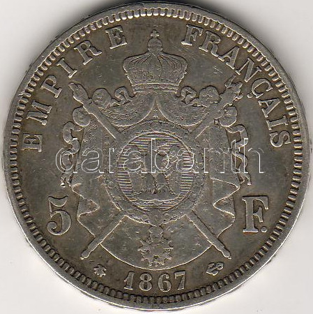 Franciaország 1867A 5Fr ezüst T:3/4 https://www.darabanth.com/hu/15-Gyorsarveres/15.0/Numizmatika/Numizmatika-Bankjegyek~89/Franciaorszag-1867A-5Fr-ezust-T34~II25075