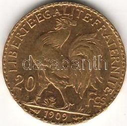Franciaország 1909 20fr arany 6,4516gr T:2/3 https://www.darabanth.com/hu/15-Gyorsarveres/15.0/Numizmatika/Numizmatika-Bankjegyek~89/Franciaorszag-1909-20fr-arany-6-4516gr-T23~II20958