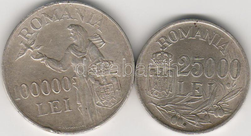 Leírás: Románia 1946 250000L,100000L 2db ezüst T:3