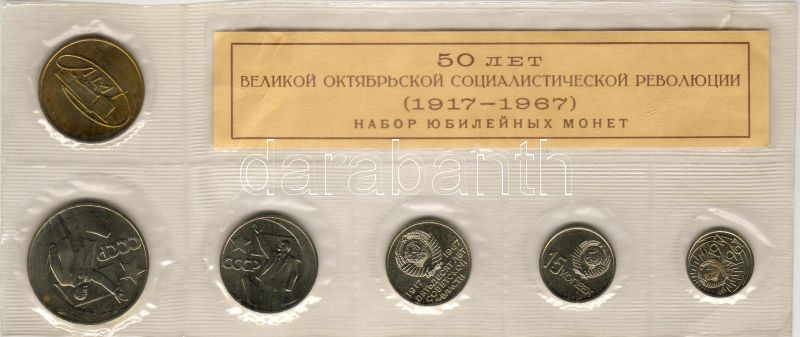 Leírás: Szovjetunió 1967 10K 15K 20K 50K 1R "1917-19672" emlékveret műanyagfóliás szetben! T:1