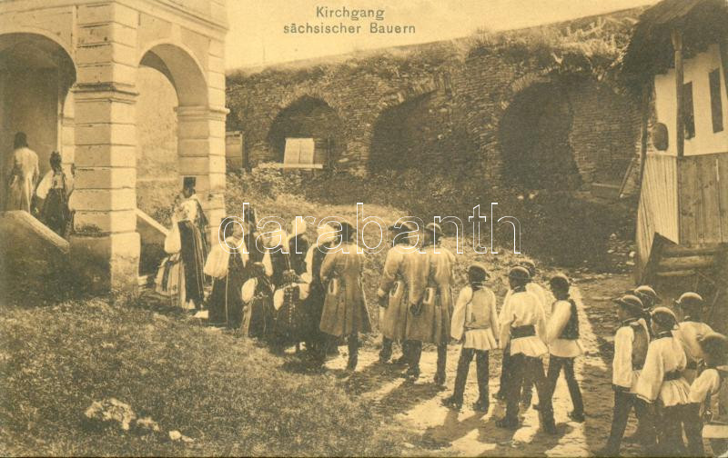 Nagyszeben churchgoers, Saxon folklore https://www.darabanth.com/hu/15-Nagyaukcio/15.1/Magyar-kepeslapok/Erdely~4539/Nagyszeben-churchgoers-Saxon-folklore~II610096