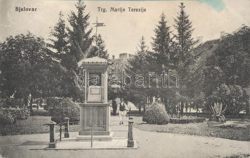 Belovár, Bjelovar Maria Theresia square https://www.darabanth.com/hu/15-Nagyaukcio/15.1/Magyar-kepeslapok/Horvatorszag-Delvidek~4542/Belovar-Bjelovar-Maria-Theresia-square~II616512