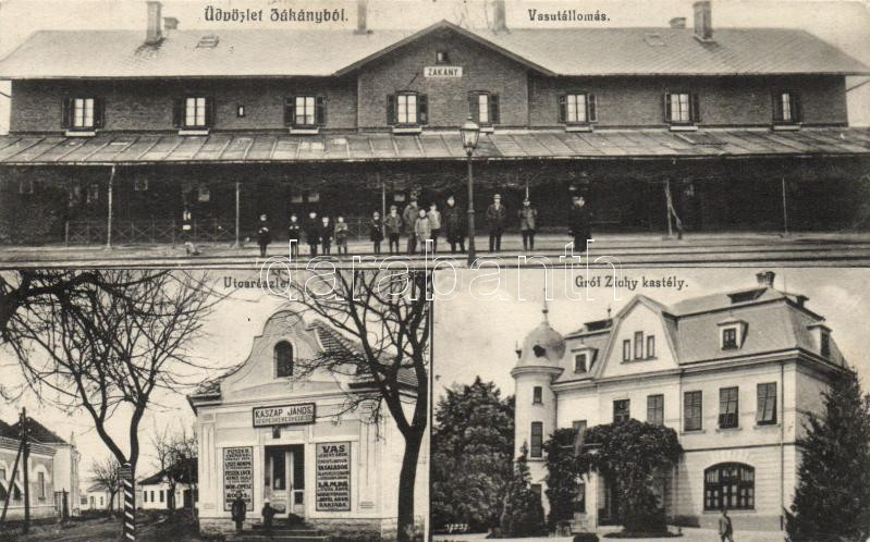 Zákány vasútállomás és Kaszap János vegyeskereskedése https://www.darabanth.com/hu/15-Nagyaukcio/15.1/Magyar-kepeslapok/Magyarorszag~4538/Zakany-vasutallomas-es-Kaszap-Janos-vegyeskereskedese~II532619