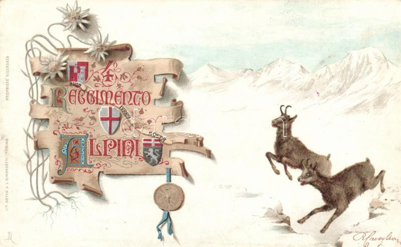 Italian military, alpine regiment litho, artist signed https://www.darabanth.com/hu/15-Nagyaukcio/15.1/Motivum-kepeslapok/Katonai~4632/Italian-military-alpine-regiment-litho-artist-signed~II605746