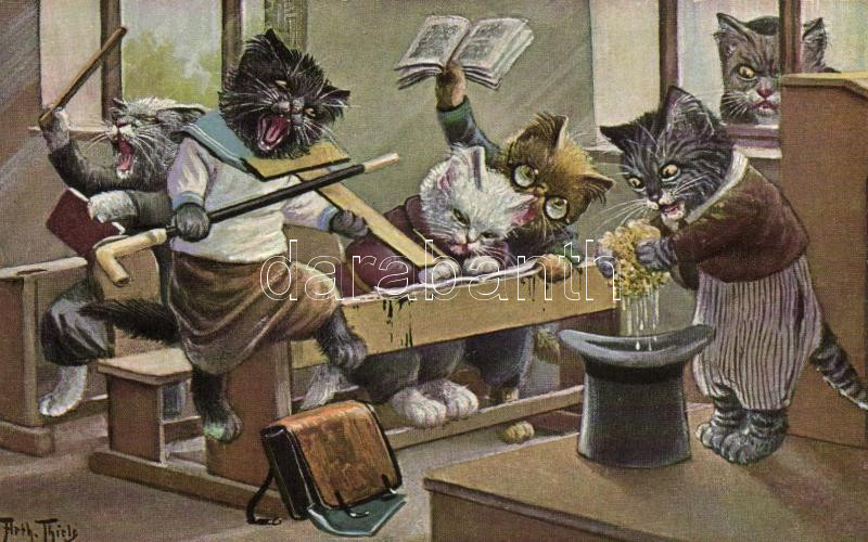 Cat school s: Arthur Thiele https://www.darabanth.com/hu/15-Nagyaukcio/15.1/Motivum-kepeslapok/Macska~4624/Cat-school-s-Arthur-Thiele~II604469