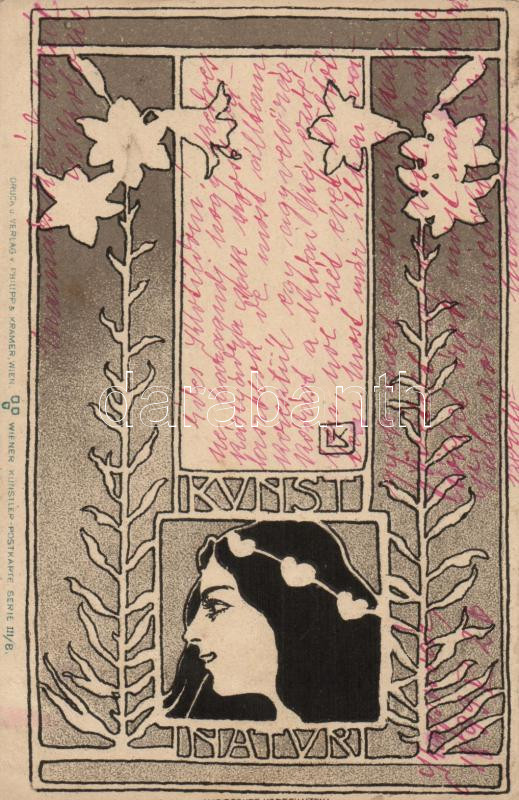 1899 Kunst Natur, Art Nouveau Philipp und Kramer s: LK (fl) https://www.darabanth.com/hu/15-Nagyaukcio/15.1/Motivum-kepeslapok/Mas-Muveszek~4614/1899-Kunst-Natur-Art-Nouveau-Philipp-und-Kramer-s-LK-fl~II597439