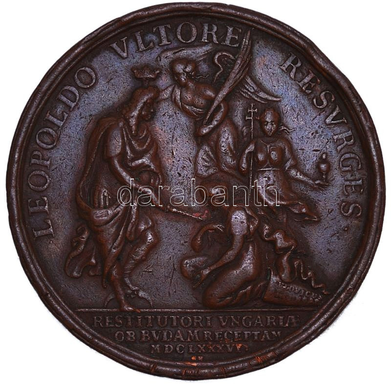 1686. I. Lipót Buda visszavételére veretett Br emlékérem. Szign: GH / LGL (45mm/36.25g) T:2-