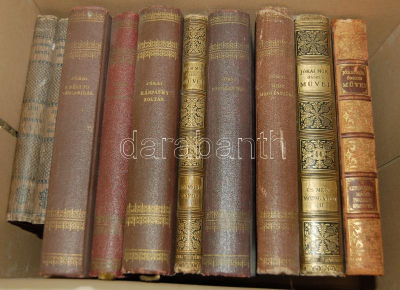Jókai Mór művei 10 kötet különböző sorozatokból, benne az 1894-es jubi... https://www.darabanth.com/hu/150-Gyorsarveres/150.0/Festmeny-mutargy-papirregiseg-egyeb/Konyvek-Egyeb-ritkasagok~59/Jokai-Mor-muvei-10-kotet-kulonbozo-sorozatokbol-benne-az-1894-es-jubileumi-diszkiadas-da~II455801