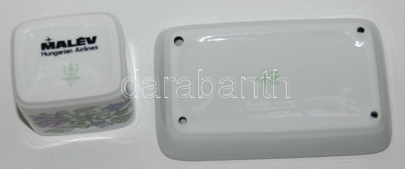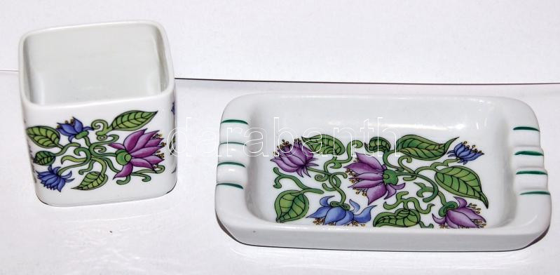 Leírás: Hollóházi jelzett porcelán hamutál és gyufatartó /Hollóházi chinaware ashtray and match-holder